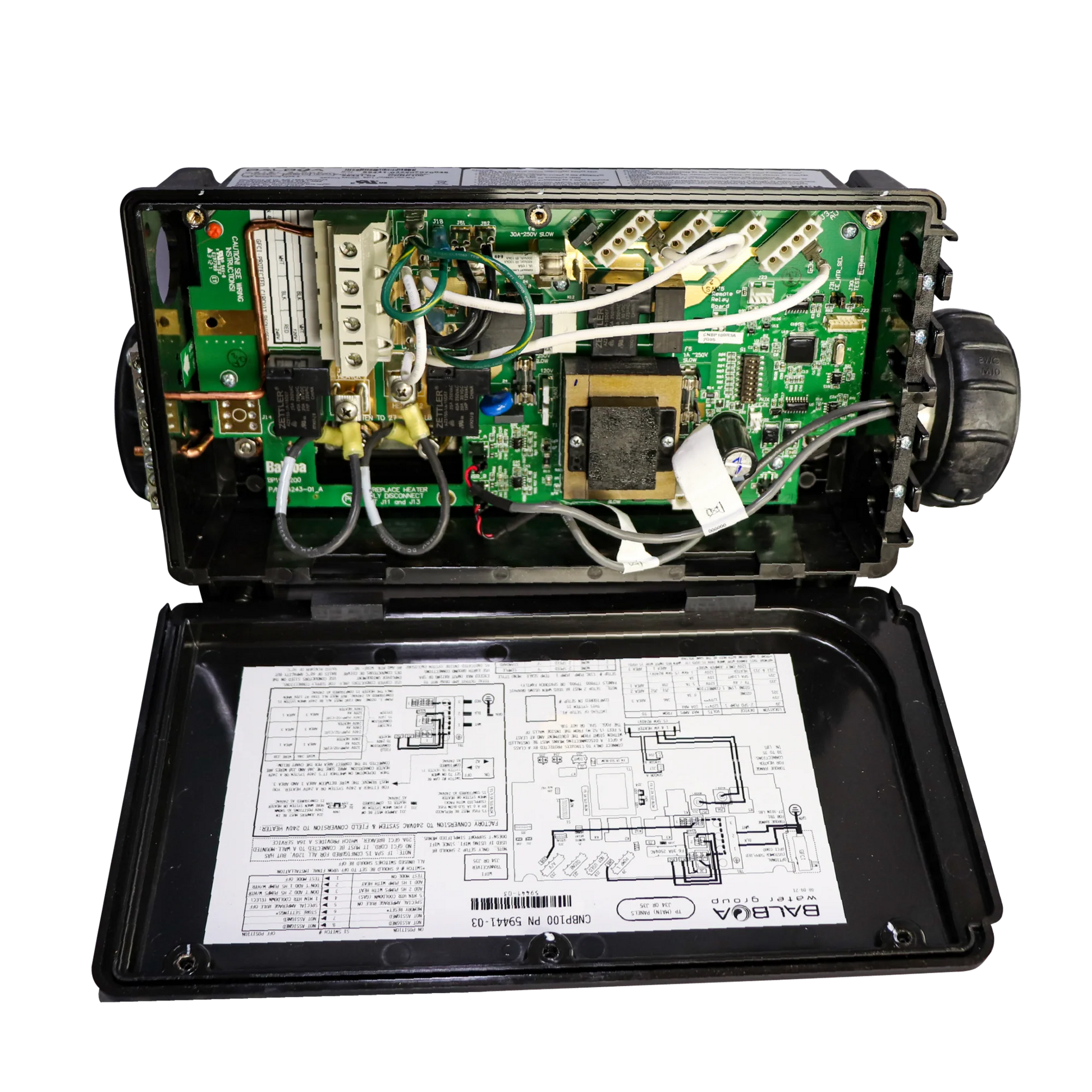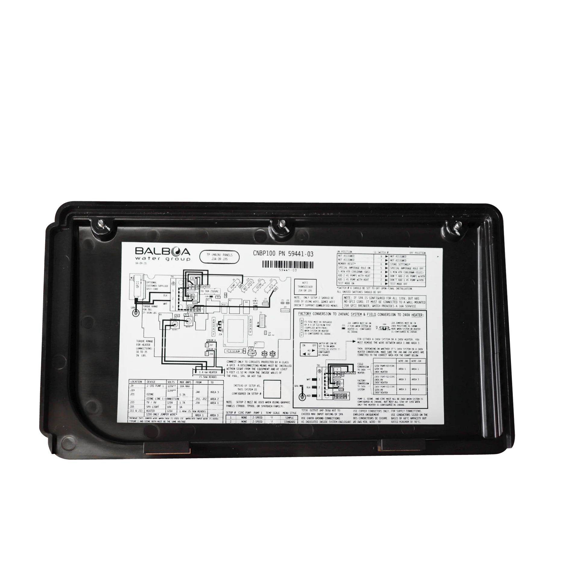 The Balboa CNBP100 is a cutting-edge control system designed to manage various components of your hot tub effortlessly. It is engineered to work with both 120V and 240V spas and can support a heater of up to 5.5kW with a 60 Hz frequency.